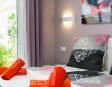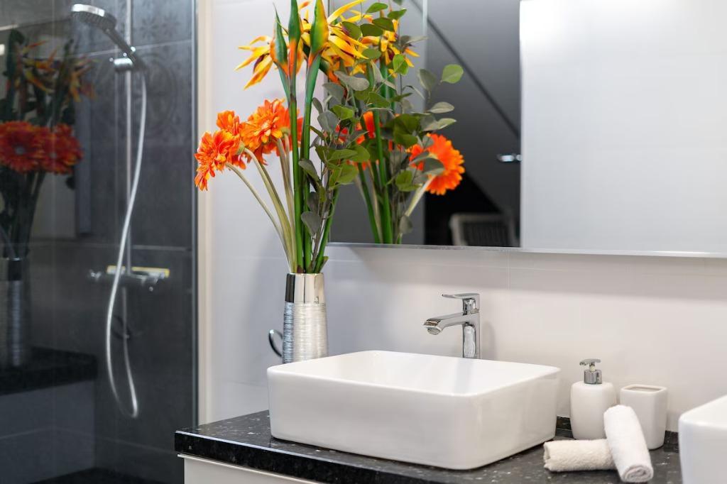 With 3 bedrooms and 2 full bathrooms, this holiday home comfortably hosts up to 6 guests. The sleeping arrangements include one bedroom with a king-size bed, one with a double bed, and a third with 2 single bed. All rooms are tastefully furnished to ensure a relaxing stay, while the bathrooms are modern and equipped with quality fittings and towels.